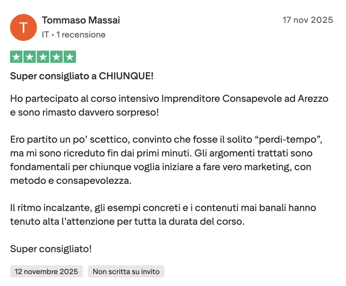 Michele non è solo un formatore, ma un imprenditore che ogni giorno applica sul campo le strategie che insegna. Se vuoi capire come sfruttare davvero il digitale per far crescere il tuo business, hai l'opportunità di imparare direttamente da chi ha fatto del marketing digitale la sua missione.
